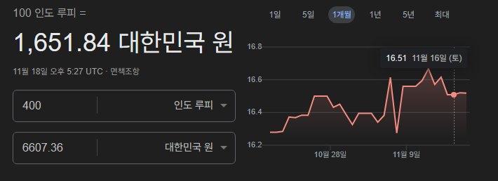 제가 확인해본 결과, 인도 아마존이 가장 저렴한 선택지였습니다. MTCGAME, G2A 등 다양한 판매처가 있지만, 대부분 중간 마진이 포함된 가격으로 상대적으로 비쌌습니다. 하지만 인도 아마존의 경우, 루피를 원화로 환산할 때 1:1에 가까운 환율이 적용됩니다. 예를 들어, 400루피를 구매하면 약 6,700원 대 로 결제되어 가장 저렴했습니다.