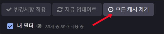 기존에 선택되어 있던 Ublock 필터를 모두 해제