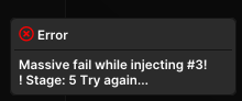 Massive fail while injecting #3!! Stage: 5 Try again...